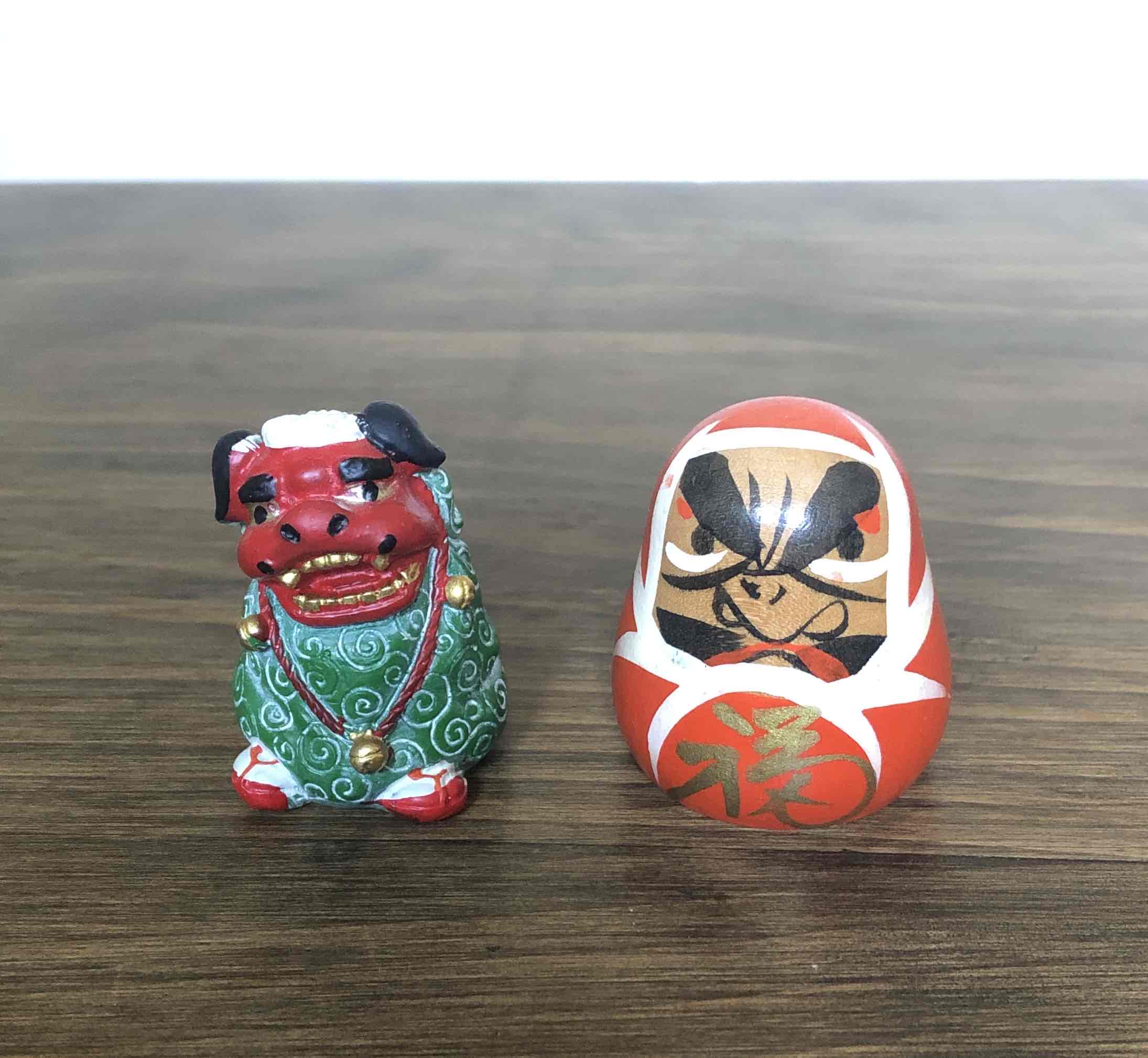 お正月飾り だるまと獅子舞 インテリア 2026.01.11 お正月の飾りとして、だるまと獅子舞の置き物です。 だるまはどこかの神社で引いたおみくじの入れ物で、手書きの力強い表情です♪ かわいいミニサイズながらも、開運や厄除けの縁起物でパワーを感じます!