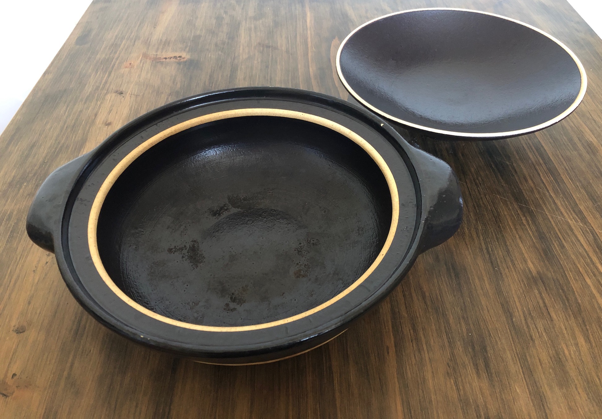 伊賀焼の土鍋 キッチン 2025.11.29 11月の初めは暑い日もあったのに、終わりはずいぶん肌寒くなりお鍋の季節がやってきました。 この伊賀土鍋は遠赤外線効果もあり、料理がおいしく仕上がるので冬に重宝しています♪ すっきりとした形と黒釉と素地のコントラストが美しい土鍋です。