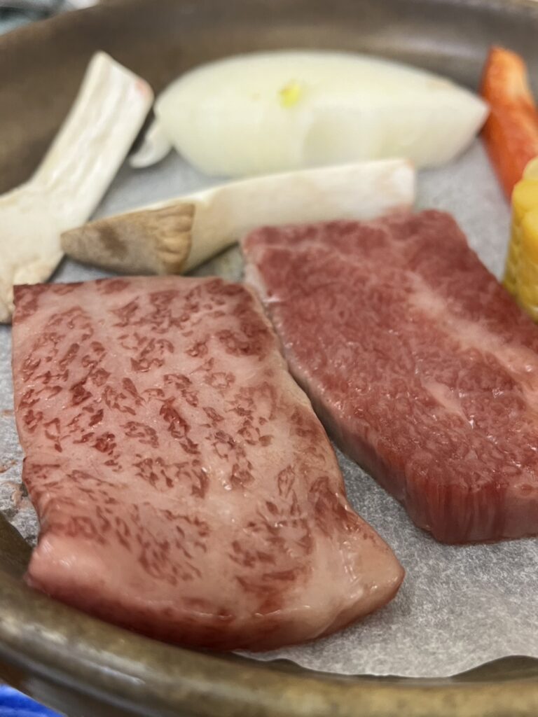 兵庫県北部、湯村温泉の旅館で但馬牛をいただきました。