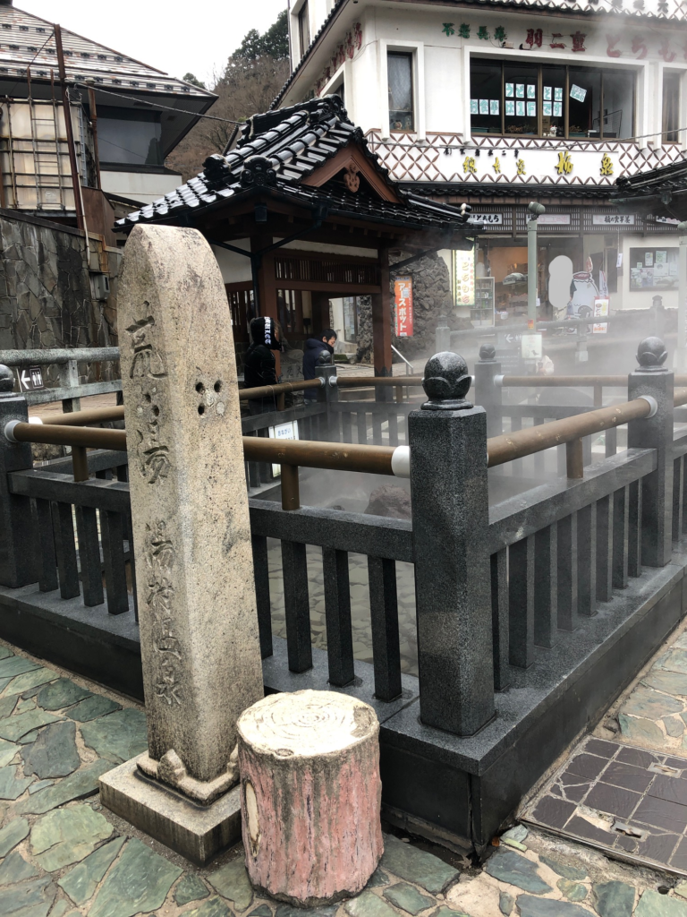 湯村温泉 荒湯 おでかけ 2026.03.11 兵庫県北部、湯村温泉に家族旅行です🌸 温泉街の真ん中にある泉源の荒湯(あらゆ)は熱湯が湧き出ており、もうもうと湯気が上がっています♨ こちらの周囲では温泉を利用して足湯、ゆで野菜や温泉卵が楽しめます♪