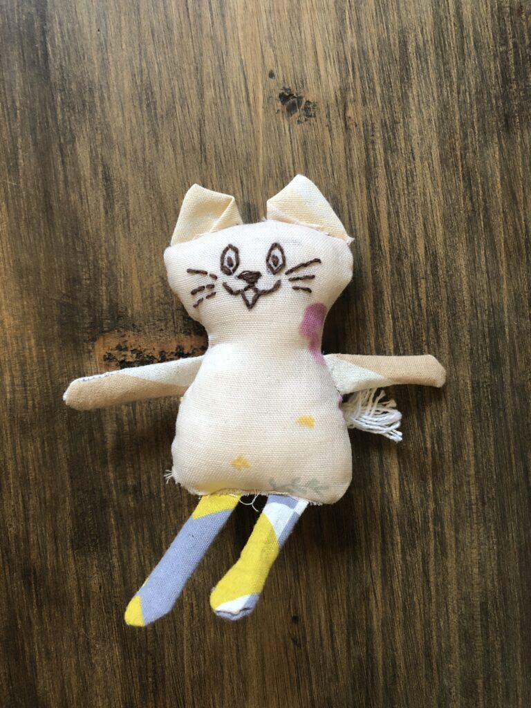 ねこのマスコットをハンドメイド 雑貨 2025.10.30 ねこのマスコットを作りたくて、大好きな絵本いないいないばあのにゃあにゃをモデルに決定。 ちいさな布と向き合うこと数時間ついに完成、満足の仕上がりです。 ならべてみました、何かがちがう❔